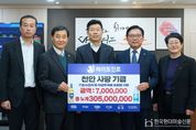 한국현대미술신문 신정은 기자 | (재)천안시복지재단은 20일 하이트진로㈜ 천안지점이 취약계층 주민을 위한 후원금 700만 원을 기탁했다고 밝혔다. 후원금은 복지사각지대 해소를 위한 지원사업과 김장 지원 사업을 위해 사용될 계획이다. 하이트진로 천안지점은 천안지역 복지사각지대 해소를 위해 현재까지 누적 3억 500만 원의 후원 활동을 이어오고 있다. 김태홍 하이트진로 천안지점장은 “지역사회 상생 경영을 실천하는 것이 기업의 사회적 책임”이라며 “앞으로도 폭넓은 사회공헌 활동을 통해 지역과 함께하는 기업이 될 것”이라고 말했다. 이운형 천안시복지재단 이사장은 “기업들의 상생 경영 실천을 위한 후원이 계속되고 있다”며 “후원자들의 취지에 맞게 잘 전달할 수 있도록 최선을 다할 것”이라고 말했다.