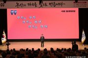 한국현대미술신문 신정은 기자 | 논산시는 6일 논산아트센터 대공연장에서 시민 500여 명이 함께한 가운데 4월 월례모임을 개최했다. 월례모임은 백성현 논산시장의 인사말을 시작으로, ‘논산딸기축제’성공 개최에 기여한 시민·단체에 대한 유공자 표창, 기념 촬영 순으로 진행됐다. 백성현 시장은 인사말에서 “남을 따라가는 행정이 아니라 사회적 변화와 세계적 흐름, 국민적 트렌드를 읽고, 지역적 특성을 정확히 파악하여 이에 맞춘 행정을 펼치는 것이 중요하다”며 “생각의 차이를 바탕으로 새로운 시도를 두려워하지 말고 도전해 주시길 바란다”고 당부했다. 또한, “시작이 반이라는 말처럼 논산의 가치를 높이기 위한 토대는 이미 탄탄히 마련됐다”며 “중단없는 논산의 발전과 시민 행복을 향한 흔들림 없는 행정을 이어가겠다”고 강조했다. 이어 지난 3월 26일부터 29일까지 나흘간 67만 명이 방문하며 흥행을 이끈 ‘논산딸기축제’의 생생한 순간을 담은 시정영상을 함께 시청하며, 축제의 열기와 현장의 분위기를 공유했다. 이날 표창을 받은 시민과 직원은 총 104명이다. 먼저, 어르신회 윤석성 강경읍분회장, 강