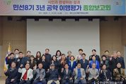 한국현대미술신문 신정은 기자 | 청주시는 19일 유네스코 국제기록유산센터에서 공약이행시민평가위원들과 관계 공무원 등 80여 명이 참석한 가운데 ‘민선8기 3년 공약 이행평가 종합보고회’를 개최했다. 이번 보고회에서는 지난 10월 개최된 각 분과회의를 통해 도출된 공약 과제의 이행평가 결과를 공유하고 남은 기간의 완성 방향과 향후 미래 과제에 대해 논의했다. 평가위원들은 민선8기 4년차에 대부분의 공약이 결실을 맺고 있고, 청주시의 공약이행이 시민이 체감하는 성과로 안정적으로 추진되고 있다고 평가했다. 88개의 공약과제는 △완료 12건 △이행 후 계속 추진 43건 △정상추진 32건 등 이행률 83.6%로 대부분이 가시적인 성과로 이어지고 있는 것으로 나타났다. 추진현황을 살펴보면, 민선8기 3년차에서는 도시기반 정비, 생활 인프라 확충, 투자활성화 등 다양한 분야에서 구체적인 성과를 거뒀다. 우선 시민참여와 사회공헌 활동의 중심 거점이 될 청주시 자원봉사센터 이전 확충사업이 지난 10월 완료됐으며, 무심천·미호강 친수공간 조성사업을 통해 모충교 일대 환경정비(4월)와 미호강 생태공원 편의