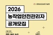 한국현대미술신문 신정은 기자 | 충남도 농업기술원은 농업 현장의 재해 예방과 안전관리 강화를 위해 오는 12월 19일까지 ‘농작업안전관리자’를 공개 모집한다. 이번 모집은 2026년 사업 추진을 위한 것으로, 천안·아산·논산·금산·부여·태안 등 6개 시군농업기술센터와 협력해 근무할 전문안전인력 12명(시군당 2명)을 선발할 예정이다. ‘농작업안전관리자’는 농업 분야의 ‘중대재해 처벌 등에 관한 법률(중대재해처벌법)’ 이행을 지원하고, 농가의 위험성 평가 및 안전관리 체계를 구축·지도하는 역할을 수행한다. 주요 업무는 △작업장·농로 등 위험요인 사전 점검 및 개선 △농업기계·농자재 등 위험요소 관리 △소음·진동·분진·가스·농약 등 유해 요인 측정 △농작업 재해 예방 지도 및 개인보호구 착용 지도·홍보 등이다. 지원 자격은 △산업안전보건법 관련 안전·보건관리 분야 실무경력 2년 이상 △산업안전보건법상 관리감독자 실무경력 1년 이상 △안전·보건관리 관련 자격증 보유자 △농작업 안전 관련 경험과 역량을 보유한 자 중 하나 이상을 충족하면 지원할 수 있다. 선발은 1차 서류심사와 2차 면접전