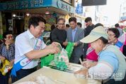 한국현대미술신문 신정은 기자 | 오세현 아산시장이 추석 명절을 앞둔 2일, 온양온천시장을 방문해 상인들을 격려하고 직접 장을 보며 명절 물가를 살폈다. 이번 행사는 명절을 앞두고 고물가와 경기침체로 어려움을 겪고 있는 전통시장 상인들을 응원하고, 전통시장 이용 분위기를 확산하기 위해 마련됐다. 현장에는 오은호 온양온천시장 상인회장을 비롯해 강창구 국민건강보험공단 아산지사장, 김민자 여성단체협의회 부회장, 장영운 한국여성소비자연합 충남지회 아산지부장 등이 함께해 장보기에 동참하며 명절 분위기를 북돋웠다. 오 시장은 배우자와 함께 온누리상품권과 아산페이를 활용해 제수용품과 먹거리를 구입하고, 현장에서 만난 시민들의 목소리에 귀 기울였다. 장보기 후에는 기획경제국장, 온양1동장, 상인회장과 함께 오찬을 하며 전통시장 활성화 방안을 논의했다. 이 자리에서 오 시장은 “상인들의 어려움과 시민들의 목소리를 시정에 적극 반영하겠다”며 “전통시장은 지역경제의 뿌리이자 시민 생활과 맞닿은 공간인 만큼, 앞으로도 상인과 시민이 함께 웃는 활기찬 전통시장을 만들기 위해 세심한 지원을 이어가겠다”고 말했다.