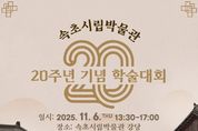 한국현대미술신문 원진 기자 | 속초시가 11월을 맞아 예술과 학술, 반려동물이 함께하는 다채로운 문화행사를 연이어 개최한다. 오는 6일부터 9일까지 시립박물관, 문화예술회관, 엑스포타워 광장에서 속초의 가을을 물들이는 문화축제가 이어진다. 6일 속초시립박물관은 개관 20주년을 기념해 학술대회를 연다. 이번 학술대회는 박물관이 20년간 축적해 온 소장자료의 학술 가치를 재조명하고 향후 전시·교육·연구의 방향을 모색하기 위한 자리다. 문서, 호구, 전적, 전통과학, 가전(家傳) 등 주요 자료군을 주제로 △율곡국학진흥원 정우진 연구위원·오일훈 연구원·김충원 연구원 △한국학중앙연구원 허원영 연구원·이태희 연구원의 발표와 지정토론이 이어진다. 7일 저녁 7시에는 속초시립풍물단이 제18회 정기연주회 ‘스무 해를 담다 “풍악”’을 속초문화예술회관 대공연장에서 선보인다. 전통 장단을 기반으로 한 창작 타악 공연으로, 모듬북·대북·버나놀이·소고놀이 등이 현대적 조명 연출과 결합해 전통음악의 현대적 감각이라는 새로운 면모를 선보인다. 9일 오전 10시에는 엑스포타워 광장에서 ‘제