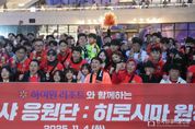 한국현대미술신문 원진 기자 | 강원특별자치도는 11월 4일 오후 5시 30분, 일본 히로시마 에디온 피스 윙 스타디움 원정석 게이트 앞에서 ‘강원FC 승리기원 행사’를 개최했다고 밝혔다. - 이번 행사는 2024~2025 아시아 챔피언스리그 조별리그 원정경기를 앞두고 선수단의 선전을 기원하고, 원정응원단을 격려하기 위해 마련됐다. 이 자리에는 김진태 도지사, 김시성 도의회의장을 비롯한 도 대표단, 주히로시마 총영사관, 현지교민, 히로시마 청소년문화센터 청소년, 강원FC 팬 등 '강원이나르샤 응원단' 약 200명이 참석했다. 이날 현장에서는 팬 선발 경쟁률 5.56대 1(신청자 556명, 선정자 100명)을 뚫고 일본 원정길에 오른 강원 FC 팬들이 히로시마 현지 청소년과 교민들과 함께 뜨거운 응원전을 펼치며 열기를 더했다. 히로시마 청소년 아카사카 마유카 학생은 한국어로 “오늘 이렇게 강원FC 경기를 직접 볼 수 있어 영광”이라며, “친구들과 이 자리에 함께한 분들과 진심으로 응원하겠다”고 말했다. 김시성 의장은 “승리를 위해 우리가 똘똘 뭉쳐 응원을 잘해야 한다”며, “응원의 힘이