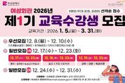 한국현대미술신문 정소영 기자 | 부산시 여성문화회관은 오는 내일(8일)부터 '2026년 제1기 문화교실' 수강생을 모집한다고 밝혔다. '여성문화회관 문화교실'은 우수한 강사진을 토대로 시민의 다양한 문화 욕구에 부합하는 배움의 장을 제공하는 평생교육 프로그램이다. 시민들에게 전문적인 능력개발과 삶의 질 향상을 위한 폭넓은 기회를 제공하고자 시 여성문화회관이 운영하고 있다. 2026년 제1기 문화교실은 내년 1월 2일부터 3월 28일까지 11주간 진행되며, 전통·어학·요리·예술·현대생활 5개 분야 97개 강좌에서 1,913명의 수강생을 모집할 예정이다. 이번 교육 과정에는 전통 분야를 비롯한 다양한 문화예술 강좌와 취·창업 등에 도움이 되는 자격증 강좌, 직장인을 위한 야간·주말 강좌가 운영될 예정이다. ▲문화예술 강좌로는 가야금, 기타, 꽃꽂이 등이 있으며 ▲자격증 강좌로는 제빵(베이킹), 컴퓨터 자격증 과정 등이 있다. 또한, ▲야간에 운영되는 필라테스․요가, 커피 바리스타 과정, 사진예술 등의 강좌 ▲주말 과정인 전통주·꽃차, 여행영어 과정 등도 만나볼 수 있다. 18세