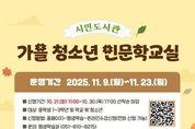 한국현대미술신문 정소영 기자 | 부산광역시립시민도서관은 오는 11월 9일부터 23일까지 시민도서관에서 부산 지역 중학생과 학교 밖 청소년 30명을 대상으로 ‘가을 청소년 인문학 교실’을 운영한다. 이번 프로그램은 청소년들이 철학과 문학을 통해 스스로의 삶을 돌아보고, 깊이 있는 사고력과 자기 성찰의 힘을 기르도록 돕기 위해 마련됐다. 프로그램은 일상의 고민에서 철학적 질문을 찾고 생각을 확장해보는 ▲고민이 철학이 되는 시간과 헤르만 헤세의 ‘수레바퀴 아래서’를 읽고 함께 토론하며 사고해보는 ▲세계문학, 청소년을 만나다 총 2개 과정으로 구성했다. 참가 희망자는 10월 21일 오전 11시부터 30일 오후 5시까지 시민도서고나 홈페이지를 통해 선착순으로 신청하면 된다. 자세한 문의는 도서관 평생학습과로 문의하면 된다. 이은경 시민도서관장은 “이번 프로그램이 철학과 문학을 매개로 청소년들이 삶을 성찰하고 사고의 폭을 넓히는 기회가 되길 기대한다”고 전했