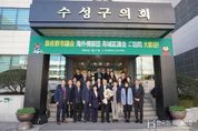 한국현대미술신문 정소영 기자 | 수성구의회는 21일 일본 이즈미사노시의회 해외시찰단이 양 도시 의회 간 교류 증진 및 선진 시설 시찰을 목적으로 수성구의회를 방문했다고 밝혔다. 오사카부 남서부에 위치한 이즈미사노시는 인구 약 10만 명의 도시로 간사이국제공항과 인접해 해외 교류가 활발한 곳이다. 수성구와는 지난 2023년 7월 우호교류도시 협정을 체결한 이후 지속적인 교류를 이어오고 있다. 금번 해외시찰단은 츠지나카 타카시 국제전략조사연구위원회 위원장을 필두로 총 12명(시의원 8명, 수행직원 4명)으로 구성되어 있으며 1월 20일부터 23일까지 3박 4일 일정으로 방한한다. 이번 수성구의회 방문은 2025년 1월 이즈미사노시의회의 첫 내방과 작년 10월 수성구의회의 답방에 이은 재회라는 점에서 양 도시 간의 깊은 신뢰를 확인하고 우호 관계를 증진하는 계기가 되었다. 이날 오전, 조규화 의장을 비롯한 수성구의회 의원들은 의회 로비에서 꽃다발과 박수로 시찰단을 따뜻하게 맞이하며 환영 인사를 나눴고, 이어진 간담회에서는 그간의 상호 교류 성과를 공유하고 향후 행정·문화 등 다양한 분야의 구