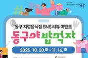 한국현대미술신문 정소영 기자 | 대구 동구청은 지정음식점 홍보와 외식산업 활성화를 위해 20일부터 11월 16일까지 4주간 ‘동구 지정음식점 홍보 SNS 인증샷 & 리뷰 이벤트’를 실시한다. 전 국민 누구나 참여 할 수 있는 이번 이벤트는 대구 동구맛집 홈페이지에서 이벤트 참여 식당을 확인 후 이용 한 뒤 리뷰를 등록하고 인증하면 된다. 리뷰 등록은 네이버 MY 플레이스 영수증 리뷰 또는 인스타그램에 음식사진과 함께 해시태그 3종(#업소명#대구동구지정음식점#동구맛집맛있어) 게시 2가지 방법으로 할 수 있으며, 이벤트 참여는 대구 동구맛집 홈페이지에서 해당 리뷰를 인증하면 된다. 참여자 중 추첨을 통해 매주 화요일 25명씩 총 100명의 당첨자를 선정해 ‘동구 맛집 명성을 담은 밀키트’ 10선 중 1개와 모바일 커피쿠폰(스타벅스)을 경품으로 증정한다. 윤석준 동구청장은 “이번 이벤트를 통해 동구 관내 다양한 지정음식점을 홍보하여 많은 분들이 동구의 맛을 즐기고 이를 통해 우리 지역 먹거리의 우수성을 널리 알리고 지역경제 활성화에 도움이 되길 바란다”고 말했다.