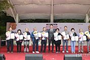 한국현대미술신문 정소영 기자 | 부산 부산진구는 10월 14일 오전 10시 송상현동상 앞에서 2025년 전국(장애인)체육대회 부산진구 성화봉송 축하행사를 우천에도 불구하고 성황리에 마쳤다고 밝혔다. 이날 행사에는 구민과 체육 관계자, 서포터즈 등 250여 명이 참석해 제106회 전국체육대회 및 제45회 전국장애인체육대회의 성공적 개최를 기원했다. 행사는 축하공연, 성화봉 점화 및 성화 출발 퍼포먼스 순으로 진행됐다. 특히 참석자들의 뜨거운 응원과 열기로 현장은 활기찬 분위기를 이뤘으며, 부산진구의 대표 캐릭터인 ‘호천냥이’와 ‘백양할배’가 관객과 함께하며 행사의 분위기를 한층 고조시켰다. 당초 송상현동상 앞을 출발해 도시철도 1호선 라인을 따라 CU서면혜화점까지 7구간을 봉송할 예정이었으나, 우천으로 1구간만 주자 봉송을 진행하고 2구간부터는 차량으로 전환하여 안전하게 성화봉송을 마무리했다. 김영욱 구청장은 “비가 오는 날씨에도 함께 해 주신 모든 분들에게 감사드리며, 이번 성화봉송 축하행사가 전국체전의 성공적인 개최를 기원하는 뜻깊은 시간이 됐다고 생각한다”며, “남은 기간 동안 부산
