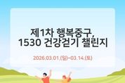 한국현대미술신문 정소영 기자 | 부산 중구는 관내 중구민과 직장인을 대상으로 3월 1일부터 3월 14일까지 걷기 앱 워크온을 활용한‘제1차 행복 중구, 1530 건강걷기 챌린지’를 운영한다 참여자들의 걷기 실천을 위한 본 챌린지는 시간과 장소 제약 없이 워크온 앱이 설치된 휴대폰을 지참한 후 기간 내 70,000보 걷기를 목표로 하고 있으며, 목표 달성 시 추첨을 통해 소정의 상품을 제공할 예정이다. ‘제1차 행복중구, 1530 건강걷기 챌린지’는 2월 23일부터 사전 예약을 시작하며 참여를 희망하는 주민은 스마트폰에서 워크온 앱을 설치하고 부산 중구보건소 커뮤니티 가입, 챌린지 메뉴 ‘예약하기’또는‘참여하기’버튼을 누르면 참여가 가능하다. 자세한 사항은 워크온 챌린지 게시판을 참고하거나 중구 보건소로 문의하면 된다.