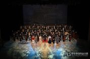 한국현대미술신문 기자 | 늦가을 군산시립교향악단의 제79회 특별기획연주회 군산 설화, 어린이 창작 음악극 '은파, 세바우 전설'이 관객들의 뜨거운 호응 속에 성황리에 막을 내렸다. 지난 16일 저녁 7시 30분, 군산예술의전당 대공연장에서 선보인 이번 공연은 군산의 대표 설화를 음악과 이야기로 풀어낸 창작 음악극으로, 지역의 문화유산을 현대적으로 재해석한 예술적 시도로 큰 관심을 모았다. 시작 전부터 객석을 가득 채운 시민과 가족 단위 관객들은 오케스트라의 웅장한 연주와 함께 공연에 빠져들었고, 서정적인 해설, 성악이 어우러진 무대에 큰 박수를 보냈다. 작곡은 국내외 무대에서 활발히 활동 중인 이정연 작곡가, 연출은 극단 ‘빈칸’의 양상아 연출가가 맡았으며, 일러스트는 손혜원 작가가 작품의 정서를 섬세한 색감과 그림으로 표현해 무대의 몰입감을 더했다. 여기에 군산시립교향악단 상임지휘자 이명근의 지휘 아래 화려한 연주를 펼친 오케스트라까지 더해 해설자, 성악 솔리스트가 한데 어우러진 완성도 높은 무대가 만들어졌다. 특히 내레이션을 맡은 구은경은 풍부한 표현력과 따뜻한 음성으로 어린이와