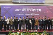 한국현대미술신문 원진 기자 | 강원도민일보(사장 경민현)가 주관하고 강원특별자치도와 원주시가 후원하는 「2025 강원 반도체 박람회」가 11월 6일 오후 3시, 원주시청 로비에서 성황리에 개막했다. 이날 개막식에는 김진태 강원특별자치도지사, 원강수 원주시장, 신경호 교육감, 박정하·송기헌 국회의원 등 주요 인사와 반도체 기업 및 학계 관계자들이 참석했다. 이번 박람회는 강원도에서 처음으로 열리는 반도체 종합 박람회로, 도내 반도체 관련 기업과 교육기관 등 다양한 기관에서 참석한 가운데 ‘미래를 여는 강원의 반도체 혁신’을 주제로 11월 6일부터 7일까지 원주시청 앞 광장 및 지하 다목적홀에서 진행된다. 시청 광장에는 반도체 전주기 홍보관을 비롯하여 공정별 기관 및 관내 주요 반도체 기업관이 마련됐다. 지하 1층에서는 「강원형 반도체 비전 심포지엄」이 개최되며, 연세대·강원대 등 도내 대학 및 특성화고 전시 부스, 시민이 직접 반도체 실습을 체험할 수 있는 XR체험존 등이 마련되어 산업 전문가와 시민이 함께 소통할 수 있도록 구성됐다. 이번 박람회가 원주시에서 열리게 된 것은, 원주가 강원 반도체 산