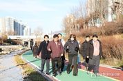한국현대미술신문 배건 기자 | 박강수 마포구청장은 12월 22일 오후 3시, 성산천 일대에서 구 부서장들과 함께 지난 2일 정비를 마친 성산천을 둘러보며 변화된 모습을 살폈다. 이번 현장 방문은 성산천 환경개선공사 및 생태경관 개선사업 완료에 따른 후속 점검 차원에서 마련됐다. 이날 라운딩은 방울내나들목에서 출발해 성산천 정비구간과 월드컵천을 거쳐 중리천교 하부 벽화 구간, 월드컵천 경관폭포 조성 구간을 지나 다시 성산천으로 돌아오는 동선으로 진행됐다. 박강수 마포구청장은 하천을 따라 이동하며 산책로와 자전거도로 상태, 보행·주행 안전 요소, 하천 둔치에 식재한 10종의 야생화의 상태 등을 꼼꼼히 살폈다. 최근 구는 사천교부터 한강 합류부까지 약 2.4km 구간을 대상으로 환경개선사업을 추진해, 도심 속 노후 하천을 보다 안전하고 자연친화적인 공간으로 재정비했다. 하천 내 준설 작업을 통해 수해 위험 요소를 해소하고, 산책로와 자전거도로를 재포장해 미끄럼 방지 기능을 강화했으며, 계단과 난간 등 노후 시설물도 전면 정비했다. 박강수 마포구청장은 최근 정비가 완료된 성산천