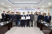 한국현대미술신문 신정은 기자 | 충청북도교육청은 18일 오전, 본관 회의실에서 충북교육청노동조합(위원장 유여종)과 2025년도 노사협의회 합의안에 대한 협약식을 개최했다. 협약식에는 윤건영 교육감과 유여종 충북교육청노동조합 위원장을 비롯해 관련자가 함께 했다. 학교 현장의 근무 여건 개선과 행정업무 효율화 방안이 담겼다. 주요 내용으로는 ▲학교운영위원회 종이 없는 회의를 위한 노트북(태블릿PC) 자체 확보 권장 ▲통학차량 안전성 확보를 위한 자체 정비기간 부여 ▲3식 학교(기관) 업무부담 경감을 위한 정원조정 시 조리직렬 의견 수렴 강화 등이 포함됐다. 또한, 지방공무원의 복지와 처우 개선을 위해 ▲지방공무원 맞춤형복지비 상향 노력 ▲자율연수비 지원 분야 확대 ▲30년 이상 장기근속 지방공무원에 대한 연공 표창 추진 ▲신규 지방공무원 교육훈련 참여자 보수 지급 노력 ▲중요직무급 수당 지급을 위한 기준 마련 등도 합의사항에 담겼다. 아울러, 업무절차 간소화를 위해 ▲학교운영위원회 전자투표 매뉴얼 보완 ▲교직원 주택임차지원기금 신청 절차 개선 등의 규정 정비 내용도 포함됐다.