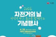 한국현대미술신문 기자 | 전주시는 오는 25일 오전 10시, 치명자산 성지 평화의전당 야외광장(완산구 바람쐬는길 120)에서 ‘자전거의 날 기념행사’를 개최한다. 자전거 이용 활성화와 더불어 자전거 이용 문화 확산을 위해 마련된 이날 행사에서는 오전 10시부터 오후 1시까지 △자전거의 날 기념식 △시민 참여 자전거 행진 △자전거 발전기를 활용한 생과일주스, 비눗방울 만들기 체험 △스피닝 자전거 체험 △자전거 여권 사업 홍보 △찾아가는 자전거 수리센터 등이 운영될 예정이다. 특히 자전거 행진은 평화의전당에서 출발해 바람쐬는길~원색명화마을~정여립 공원을 지나 전주천 자전거길로 돌아오는 약 10㎞ 구간을 시민들이 함께 봄바람을 느끼며 자전거를 타고 달리게 된다. 또한 개인 자전거가 없는 시민도 누구나 전주시 공영자전거 ‘꽃싱이’(1인용, 2인용, 아동용)를 무료로 대여해서 행진에 참여할 수 있다. 자전거 행진 참여를 원하는 시민은 오는 24일까지 행사 포스터의 QR 코드에 접속해 신청하거나, 전화로 신청하면 된다. 또, 행사 당일 현장 신청도 가능하다. 이와 함께 이날 자전거 행진에 참여