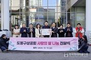 한국현대미술신문 배건 기자 | 서울 도봉구가 지난 12월 4일 도봉구상공회로부터 도봉구상공회 송년의 밤 행사에서 ‘따뜻한 겨울나기’ 성금 500만 원을 전달받았다. 이날 상공회는 ‘따뜻한 겨울나기’ 성금 외에도 지역 내 중·고등학생 5명에게 각각 50만 원씩 총 250만 원의 장학금을 전했다. 지난 12월 12일에는 구에 쌀 10kg, 709포를 기탁했다. 기탁받은 쌀은 복지관 9개소, 장애인협회 3개소, 사립경로당 24개소에 전달됐다. 김만복 도봉구상공회 회장은 “앞으로도 나눔과 상생의 가치를 실천하는 도봉구상공회가 되겠다.”라고 말했다. 도봉구상공회는 매년 쌀과 성금을 기부하며 지역사회에 나눔의 가치를 실현하고 있다. 오언석 도봉구청장은 “어려운 시기에도 불구하고 따뜻한 나눔을 실천해 주신 도봉구상공회에 깊이 감사드린다.”라고 전했다.