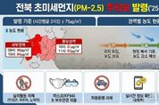 한국현대미술신문 기자 | 전북특별자치도 보건환경연구원은 25일 오전 전북 서부권과 중부권에 국외 오염물질 유입의 영향으로 초미세먼지(PM-2.5) 농도가 높아지며 초미세먼지 주의보를 발령했다고 밝혔다. 초미세먼지(PM-2.5) 주의보는 시간 평균 농도가 2시간 이상 75㎍/㎥을 넘길 때 발령된다. 이날 서부권역은 오전 9시 99㎍/㎥, 10시 84㎍/㎥, 중부권역은 오전 10시 81㎍/㎥, 11시 83㎍/㎥를 기록하며 기준치를 초과했다. 이번 주의보는 중부와 남서부 지역을 중심으로 오전까지 국외 미세먼지가 유입되면서 발령된 것으로 분석된다. 오후부터는 북서쪽에서 비교적 청정한 기류가 유입되며 농도가 점차 낮아질 것으로 예상된다. 전경식 보건환경연구원장은 “공기 중 초미세먼지와 미세먼지 농도가 높아지면 어린이와 노약자, 호흡기·심장 질환자 등 민감군은 물론 일반인도 가급적 실외활동을 자제해야 한다”며 “부득이하게 외출해야 할 경우에는 마스크와 보호안경 등을 착용하고, 대기오염 저감을 위해 차량운행도 가급적 줄여 달라”고 당부했다. 아울러“전북특별자치도 실시간대기정보시스템을 통해 대기환경정보 확인과