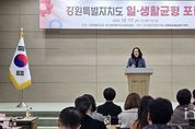 한국현대미술신문 원진 기자 | 강원특별자치도는 12월 17일 강원특별자치도와 강원특별자치도경제진흥원이 공동 주최하고, 강원특별자치도여성가족연구원과 강원여성새로일하기센터가 주관하여 강원특별자치도여성가족연구원 1층 강당에서 '강원특별자치도 일·생활균형 포럼'을 개최했다. 이번 포럼은 여성의 경력단절을 예방하고, 저출산 및 지역소멸 극복을 위해 지역사회 전반에 일·생활 균형 문화를 확산하기 위한 담론장으로 마련됐다. 포럼에서는 '강원특별자치도 일·생활균형 실태조사' 결과를 공유하고, 행정·기업·노동·지역 현장 등 다양한 주체가 참여한 토론을 통해 강원지역의 여건을 반영한 정책 방향과 실행 과제가 논의됐다. 좌장은 정구연 교수가 맡았다. 토론에는 박관희 강원특별자치도의원, 이지영 강원교통방송 편성국장, 남미영 한국여성경제인협회 강원지회 명예회장, 김재중 한국노동조합총연맹 강원도지역본부 의장, 박옥희 엔씨스마트컨설팅 대표(가족친화인증 평가위원), 윤수경 강원광역여성새로일하기센터 센터장, 유효숙 강원특별자치도 여성청소년가족과 팀장이 참여해 분야별 현장 경험과 제도 개선 의견을 공유했다. 정영미 강원특별자치도