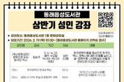 한국현대미술신문 정소영 기자 | 부산 동래구는 오는 2월 19일부터 동래읍성도서관과 안락누리도서관에서 지역 주민을 대상으로‘2026년 상반기 성인 강좌’수강생을 모집한다고 밝혔다. 이번 상반기 성인 강좌는 3월부터 5월까지 운영될 예정이며, 동래읍성도서관에서는 △[독서문화강좌] 문학으로 읽는 한국의 역사 △[평생학습센터 강좌] 영국 인문학을 운영하고, 안락누리도서관에서는 △[독서문화강좌] 그림책을 통한 마음 챙김 △[평생학습센터 강좌] 일상을 담는 수채화 일러스트를 진행한다. 신청은 2월 19일 오전 10시부터 동래읍성도서관과 안락누리도서관 누리집을 통해 선착순으로 가능하다. 강좌별 신청 시작일과 운영 기간이 다르므로, 자세한 사항은 각 도서관 누리집을 참고하거나 동래읍성도서관과 안락누리도서관으로 문의하면 된다. 동래구 관계자는“지역 주민들이 배움의 즐거움을 느끼고 인문학적 소양을 넓힐 수 있도록 다양한 프로그램을 준비했으니 많은 관심과 참여를 바란다”라고 말했다.