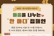 한국현대미술신문 배윤섭 기자 | 시흥시장곡종합사회복지관은 연말을 맞아 지역사회에 따뜻한 마음을 전하기 위한 ‘마음을 나누는 한 마디’ 캠페인을 진행한다. 이번 캠페인은 이웃을 향한 응원의 말, 위로의 말, 사랑의 말을 담은 짧은 문장을 시민들로부터 응모 받아 서로에게 위로와 용기를 건네는 나눔의 장을 만들기 위해 마련됐다. 참여자는 직접 창작한 문장 또는 문학 작품 속 인용문 중 마음을 전하고 싶은 한 문장을 제출할 수 있다. 응모 기간은 11월 3일부터 11월 14일까지이며, 시흥시민이라면 누구나 참여할 수 있다. 참여 방법은 시흥시장곡종합사회복지관 1층 복도 현장 신청 또는 온라인으로 하면 된다. 선정된 문장은 내부 심사를 거쳐 캘리그래피 작품으로 제작되며, 오는 12월 시흥시장곡종합사회복지관 복도갤러리에서 전시된다. 전시된 작품은 시민들에게 한 해를 따뜻하게 마무리할 수 있는 작은 위로의 메시지로 전달될 전망이다. 시흥시장곡종합사회복지관 관계자는 “짧은 문장이지만, 시민 한 사람 한 사람의 따뜻한 마음이 모여 이웃에게 큰 위로가 될 것”이라며 “많은 시민이 이번 캠페인에 참여해 따뜻한 시흥을