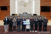 한국현대미술신문 배윤섭 기자 | 서울특별시 금천구의회는 ‘2025 서울시 구의원 한마음체육대회’에서 권역대항경기 준우승으로 받은 상금(온누리상품권 30만원)을 지역사회 나눔에 활용하며 따뜻한 연대를 실천했다. 금천구의회는 지난 18일, 볕바라기 사회적협동조합(장애인 공동생활 가정)에 상금을 전달하며 연말의 따뜻한 나눔에 동참했다. 이인식 의장은 “의원들이 함께 참여한 체육대회의 의미 있는 성과를 지역사회와 나눌 수 있어 더욱 뜻깊다”며, “금천구의회는 앞으로도 작은 실천이 큰 따뜻함으로 이어질 수 있도록 구민과 함께하는 나눔을 지속해 나가겠다”고 밝혔다.