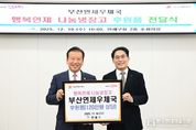 한국현대미술신문 정소영 기자 | 연제구는 12월 10일 부산연제우체국(국장 정옥균)으로부터 ‘행복연제 나눔냉장고’ 사업 활성화를 위한 120만 원 상당의 후원품을 전달받았다. 이번 후원은 지역 내 어려운 이웃을 돕고자 마련된 것으로, 후원품은 거제1동, 연산4동, 연산6동(동별 40만 원 상당)에 각각 전달되어 취약계층 먹거리 지원 사업에 사용될 예정이다. 부산연제우체국은 매년 나눔냉장고 사업을 꾸준히 후원하며 지역사회에 기여해오고 있다. 정옥균 부산연제우체국장은 “지역과 함께 성장하는 공공기관으로서 도움이 필요한 분들에게 작은 희망을 전할 수 있어 기쁘다”라며 “앞으로도 다양한 사회공헌 활동을 통해 지역 주민들과의 소통을 이어가겠다”라고 말했다. 구 관계자는 “부산연제우체국의 꾸준한 나눔 실천이 지역사회에 큰 힘이 되고, 어려운 이웃들에게 큰 위로와 용기를 주고 있다”라며 “지속적인 관심과 후원에 감사드린다”라고 말했다.