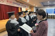 한국현대미술신문 기자 | 늦은 나이 배움에 나섰던 늦깎이 학생들이 졸업장을 받고 세상과 소통하는 제2의 인생을 찾아 나섰다. 전주주부평생학교(교장 박영수)는 25일 전북특별자치도 여성가족재단 별관 1층에서 ‘제10회 초·중등학력 인정 졸업식’을 개최하고, 33명의 졸업생에게 값진 졸업장을 수여 했다. 이날 졸업식에는 재학생과 졸업생 가족 등이 참석해 자리를 빛냈으며, 우범기 전주시장도 영상 축사를 통해 졸업생들에게 따뜻한 격려와 응원의 메시지를 전했다. 성인문해교육 학력인정 과정은 경제적·사회적 사정으로 정규 교육을 받지 못한 성인들에게 국가가 인정하는 학력 취득 기회를 제공하는 프로그램으로, 짧게는 1년 길게는 3년 동안 이어지는 교육과정을 성실히 이수해야 학력인정서를 받을 수 있다. 특히 이날 졸업식에서는 △면학 분위기 조성에 솔선수범한 이삼순 졸업생 △고령임에도 학업에 충실했던 송순자 졸업생 △최고령의 나이에도 끈기 있게 노력한 황호남 졸업생 △우수한 성적으로 타의 모범이었던 임종섭 졸업생 등 우수한 성적과 학교생활에 모범을 보여온 4명의 졸업생이 전주시장상을 수상했다. 초등과