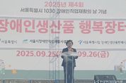 한국현대미술신문 배윤섭 기자 | 서울특별시의회 보건복지위원회 김영옥 위원장(국민의힘, 광진3)은 9월 25일부터 26일까지 양일간 반포한강공원 달빛광장에서 개최되는 『2025년 제4회 장애인직업재활의 날 기념 행복장터』에 참석해 장애인과 비장애인이 함께하는 화합의 장을 축하했다. 이번 행복장터는 “착한소비! 행복 업(UP)! 희망 업(UP)!”을 주제로, 서울시 관내 30여 개 장애인직업재활시설이 직접 생산한 가공식품, 생활용품, 사무용품 등을 전시·판매했다. 또 도자기컵 만들기, 나만의 티셔츠 만들기, 스티커 인쇄 체험 등 다양한 부스가 운영돼 시민들이 장애인생산품의 가치를 직접 느끼고 이해할 수 있는 기회가 제공됐다. 특히 실로암시각장애인복지관 드리미예술단과 아마추어 버스킹 팀 등이 참여한 문화예술 공연은 장애인과 비장애인이 함께 즐기는 축제 분위기를 더하며 의미를 더했다. 김영옥 위원장은 축사를 통해 “행복장터는 장애인생산품을 알리고 시민들이 ‘착한소비’를 실천하는 동시에, 장애인과 비장애인이 서로를 이해하며 어울리는 뜻깊은 자리”라며 “이곳에서의 소비는 단순한 구매를 넘어 장애인의 일자리를 지키고 자립을