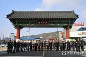 한국현대미술신문 신정은 기자 | 태안군이 태안읍 원도심의 도시재생과 역사성 회복을 위해 추진해 온 ‘태안읍 역사문화 거리 조성’의 1단계 사업을 성공적으로 마무리했다. 군은 지난 12일 동문리 일원에서 가세로 군수를 비롯한 군의원, 지역주민 등 200여 명과 함께 경이정로 도로 개설과 일주문의 준공을 기념하며 현판식을 개최했다. 이번 사업은 중앙로에서 경이정에 이르는 구간의 경관을 개선하기 위해 추진됐다. 2020년 도시계획시설 결정 고시 이후 토지 보상 등의 절차를 거쳐 2024년 5월 착공했으며, 약 1년 7개월 만에 도로를 개통했다. 도로 입구에 웅장하게 건립된 ‘일주문’은 태안읍성 동안문 등 인근 문화재와 조화를 이루는 전통 양식으로 설계됐다. 특히 군은 憬夷亭路(경이정로) 현판을 설치해 도로의 정체성을 담았으며 지역의 새로운 랜드마크가 되길 기대하고 있다. 군은 일주문에 ‘집착을 내려놓고 마음을 비운다’는 방하착(放下着)의 의미를 담았다. 방문객들이 문을 지나며 일상의 번잡함을 내려놓고 태안의 역사와 문화를 되새길 수 있도록 상징성을 부여했다. 아울러 기존 6m였던 경이정길의