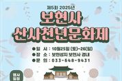 한국현대미술신문 원진 기자 | 강릉시 보현사는 오는 10월 25일부터 26일까지 이틀간 보현성지 보현사 경내에서 2025 보현사 산사 천년문화제를 개최한다. 이번 행사는 천년 고찰 보현사의 역사와 정신을 되새기며, 시민과 관광객이 함께하는 전통문화 축제로 마련됐다. 보현사 산사 천년문화제는 국민의 안녕과 지역의 평안을 기원하는 산신대제를 시작으로 삼대화상 다례제와 산사음악회를 비롯해, 사찰의 고즈넉한 정취 속에서 시민이 함께 참여할 수 있는 다양한 프로그램으로 진행된다. 전통차 체험과 더불어 사찰음식과 강릉 향토음식도 선보인다. 1일차 주요 행사로는 우리의 전통 다례제와 함께 국악과 현대음악이 어우러지는 산사음악회가 열린다. 참가자들은 차 한 잔에 담긴 여유를 나누고, 깊은 울림의 음악을 통해 특별한 감동을 경험하게 된다. 또한 사찰음식과 향토음식 전시는 행사 기간 이틀간 상시 운영된다. 수행자의 지혜와 전통이 담긴 건강한 사찰음식과 지역 고유의 향토음식을 직접 관람하며, 사찰과 지역 식문화의 깊은 맛과 멋을 체험할 수 있다. 허동욱 문화유산과장은