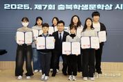한국현대미술신문 신정은 기자 | 충청북도교육청 직속기관 교육도서관은 20일 오전, 도서관 지하 1층 다목적강당에서 제7회 충북학생문학상 시상식을 개최했다. 이날 시상식에는 수상 학생과 학부모, 지도 작가를 비롯해 윤건영 교육감 등 관계자 100여 명이 참석해 학생들의 성취를 함께 축하했다. 충북학생문학상은 지역 등단 작가의 지도를 연계한 충북형 문학상으로, 문학적 소질을 지닌 학생을 발굴하고 창작 역량을 키우기 위해 매년 운영되고 있다. 참가 학생들은 3월 등록을 시작으로 4월부터 10월까지 지역 작가의 대면 지도를 받으며 문학과 글쓰기를 배웠고, 이후 작품 공모와 심사를 거쳐 수상작이 선정됐다. 올해는 시‧소설‧수필‧동화‧독후감‧생활글 등 6개 분야에서 총 36명의 수상자가 선정됐으며, 대상은 중앙초등학교 6학년 임규림 학생의 동화 '지구의 마지막 사람들'이 차지했다. 대상작 '지구의 마지막 사람들'은 3025년, 심각한 환경 오염으로 인류가 달과 화성으로 떠난 이후의 지구를 배경으로 주인공 라리엇은 아버지를 기다리며 지구에 남아 삼촌과 함께 테라시드라는 씨앗을 틔우고, 사람이 살 수