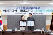 한국현대미술신문 배윤섭 기자 | 강남구의회는 10일 연천군의회를 방문해 지방의회간 우호 증진 및 공동발전을 위한 친선교류 강화를 논의했다. 친선결연 협약식은 연천군 임시회 본회의가 종료한 후 진행했으며 이호귀 의장·복진경 부의장·이동호 운영위원장·손민기 의원이 참석해 친선결연 논의 및 상호 협력 추진을 위한 차담회를 진행하며 문화시설 등을 시찰했다. 주요 협약 내용으로 지역경제 활성화를 위한 교류 추진, 기관 간 협력 활동을 통한 정보교환 및 상호발전 방안 협의, 기관 간 공동이익을 위한 분야별 협력 추구, 그 밖에 상호 발전을 위해 필요한 사항이 논의됐다. 이호귀 의장은 답사를 통해“연천군이 지역 발전과 생태 보호에 힘써온 노력에 진심 어린 존경을 표한다”라며, “지방자치 발전과 지역 간 상생의 모범을 만들기 위해 연천군의회와 더욱 긴밀히 협력하겠다”라고 말했다.