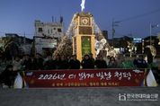 한국현대미술신문 배윤섭 기자 | 가평군 청평면은 2일 오후 5시 청춘역1979 시계탑 광장에서 ‘2026년 새해맞이 홍보탑 점등식’을 열었다. 이번 행사는 지역 주민과 함께 새해의 건승을 기원하고 공동체가 나누는 희망과 연대의 의미를 되새기기 위한 자리였다. 점등식에는 박성규 청평면장, 김경수 가평군의회 의장과 김종성 부의장, 임광현 경기도의회 의원, 지역 주민 등이 참석했다. 점등식은 지역 가수의 식전 공연을 시작으로 사회자의 행사 안내, 내빈 소개, 기념사와 축사 순으로 이어졌다. 홍보탑은 연말연시 지역의 랜드마크 역할을 하며 주민과 방문객에게 따뜻한 메시지를 전할 예정이다. 박성규 청평면장은 “면민 여러분과 함께 새해맞이 홍보탑 점등식을 하게 돼 매우 뜻깊다”며 “다가오는 2026년 한 해도 안전하고 따뜻한 지역 공동체를 만들기 위해 최선을 다하겠다”고 말했다.