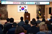 한국현대미술신문 박재남 기자 | 강화군은 지역 인재 양성과 공교육 경쟁력 강화를 위해 2026년도 교육경비 지원사업에 총 29억 원의 예산을 편성하고, 12일 인천광역시교육청 및 관내 학교 관계자 등을 대상으로 ‘2026년 교육사업 설명회’를 개최했다. 교육경비 지원사업은 강화군이 지속적으로 확대해 온 대표적인 교육 지원 정책으로, 타 지자체와 비교해도 높은 수준의 교육투자를 이어가고 있다. 군은 방과 후 학교 프로그램, 창의적 체험활동, 진로·진학 프로그램, 명문고 육성, 방학 중 중식비 지원 등 학교별 특성과 수요에 맞춘 다양한 교육 프로그램 운영을 지원함으로써 농어촌 지역의 교육격차 해소와 공교육 경쟁력 강화를 도모하고 있다. 이번 설명회는 이 같은 교육경비 지원사업의 세부 추진 방향과 신청 절차를 안내하고, 학교 현장의 이해를 높이기 위해 마련됐다. 아울러 군에서 활발하게 추진하고 있는 청소년 국제교류 사업에 대한 설명도 함께 진행됐다. 설명회는 1부와 2부로 나뉘어 진행됐으며, 관내 교육 관계자 80여 명이 참석해 높은 관심을 보였다. 1부에서는 2026년 교육경비 지원사업 설