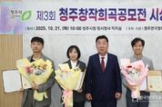 한국현대미술신문 신정은 기자 | 청주시가 후원하고 (사)청주연극협회가 주최‧주관한 제3회 청주 창작희곡 공모전 시상식이 21일 임시청사 직지실에서 개최됐다. 이번 공모전은 한국 연극계의 새로운 목소리를 발굴하고 창작희곡의 활성화를 도모하기 위해 마련됐으며, 전국에서 다양한 소재와 형식을 담은 77편의 작품이 출품되는 등 뜨거운 관심을 모았다. 심사는 연출가, 극작가 등 연극 전문인으로 구성된 심사위원단이 맡아 작품의 완성도, 독창성, 실연성의 3개 항목에 대한 심사를 진행해 최종 3개의 작품을 선정했다. 최종 선정된 작품은 독창성이 높고 무대화의 가능성이 높다고 평가된 작품으로 대상(상금 1,500만원)은 이홍이 작가의 ‘모스크바의 바다’, 최우수상(상금 1,000만원)은 노동훈 작가의 ‘고민수의 변수 통제 시뮬레이션’, 우수상(상금 500만원)은 서준교 작가의 ‘다이치’에 영광이 돌아갔다. 수상작들은 저작권 계약을 맺고 청주 극단에 공연 제작 우선권을 지원하게 된다. 상을 수여한 이범석 청주시장은 “창작희곡은 한국 연극의 뿌리를 지탱하는 중요한 장르로, 이번 공모전을 통해 참신한 극작