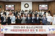 한국현대미술신문 배윤섭 기자 | 경기도여주교육지원청은 10월 15일, 여주시의회 본회의장에서 '2025 여주 청소년교육의회 발표회 및 폐원식'을 개최했다. 이번 행사는 지난 6개월 동안 여주 청소년들이 직접 기획·참여한 사회참여활동 결과를 공유하고, 의정활동을 마무리하는 자리로 마련됐다. 이날 행사에는 김상성 교육장을 비롯해 박두형 여주시의회 의장과 여섯 명의 시의원, 청소년교육의회 의원 36명 및 학부모가 참석해 청소년들의 성장과 노력을 함께 축하했다. 여주교육지원청 김상성 교육장은 격려사에서 “청소년의 목소리가 지역사회를 변화시키는 힘이 된다”며 “여러분의 작은 실천이 여주의 미래를 밝히는 등불이 되기를 바란다”고 전했다. 또한 박두형 여주시의회 의장은 “여주시의회도 여러분의 제안을 귀 기울여 듣고, 청소년이 행복한 도시를 만드는 데 함께하겠다”고 격려했다. 이날 발표회에서는 청소년의회 5개 상임위원회(환경·복지·인성·시설·교육)가 각 분과별로 진행한 사회참여활동과 정책제안서를 공유했다. 환경위원회는 ‘지속 가능한 여주를 위한 생활 속 실천 방안’을, 복지위원회는 ‘보행