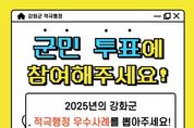 한국현대미술신문 박재남 기자 | 강화군은 오는 10월 27일부터 10월 31일까지 5일간 강화군 홈페이지를 통해 ‘2025년 강화군 적극행정 우수사례 군민 투표’를 실시한다고 밝혔다. 이번 투표는 행정에 대한 군민의 체감도와 참여를 높이기 위해 마련된 것으로, 강화군 각 부서에서 제출한 18건의 적극행정 우수사례 중 1차 심사를 통해 선정된 8건을 대상으로 군민이 직접 우수사례를 선택할 수 있다. 투표는 강화군청 홈페이지 ‘적극행정 우수사례 투표’ 배너를 통해 간편하게 참여할 수 있으며, 투표 결과는 군 내부 심사 점수와 합산하여 ‘적극행정 우수사례 및 우수공무원’ 선정에 반영될 예정이다. 강화군은 이번 군민 투표를 통해 현장 중심의 적극행정 성과를 널리 공유하고, 공직자의 적극적인 업무 추진 문화를 확산시켜 나간다는 방침이다. 박용철 군수는 “군민이 체감할 수 있는 적극 행정은 진정한 소통의 출발점”이라며 “앞으로도 창의적이고 능동적인 공직문화가 정착될 수 있도록 적극행정을 지속적으로 추진하겠다”고 밝혔다.