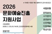 한국현대미술신문 기자 | 군산문화관광재단이 지역 예술 현장에 창작 활력을 불어넣기 위해 ‘2026년 문화예술진흥 지원사업’에 참여할 예술인과 예술단체를 공개 모집한다. 올해 재단은 지역 예술인들이 복잡한 행정절차에서 벗어나 창작 활동에 집중할 수 있도록 지원 제도를 대폭 개선했다. 과도한 지원 신청 서류를 간소화해 참여 문턱을 낮웠으며, 기존 사업계획서 제출 방식 대신 모바일 메신저처럼 간편하게 접수할 수 있는 ‘네이버폼 기반 간편 접수 시스템’을 도입해 접근성을 높였다. 또한 신진 예술인의 참여 확대를 위해 신설한 ‘신진예술’ 분야에 한해 ‘지출 증빙 간소화 제도’를 시범 운영, 현장의 실질적인 부담을 줄였다. 이와 함께 현장의 의견을 반영해 선정된 예술인과 단체에 대한 홍보를 강화하고, 우수 예술인(단체)을 발굴·선정하는 등 ‘예술인 중심’의 지원 체계를 더욱 공고히 할 방침이다. 이번 사업은 공고일 기준 1년 이상 군산시에 거주하거나 소재한 예술인과 단체를 대상으로 하며, 군산 지역에서 이뤄지는 다양한 문화예술 창작 활동을 지원하기 위해 총 2억 원 규모로 추진된다.