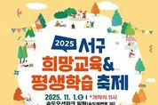한국현대미술신문 정소영 기자 | 부산 서구는 오는 11월 1일 송도오션파크에서 서부교육지원청과 공동으로 '2025년 서구 희망교육 & 평생학습 축제'를 개최한다. 이번 축제는 ‘아이부터 어른까지, 함께 배우고 나누는 즐거운 하루’를 주제로 오전 11시부터 오후 4시까지 다채로운 프로그램이 펼쳐질 예정이다. 대신여자중학교의 신나는 밴드 공연을 시작으로, 관내 7개 학교, 10개 학생 동아리, 12개 평생학습 동아리가 참여해 열띤 무대를 선보인다. 또한 38개의 특색 있는 체험부스, 온가족 플리마켓, 희망교육 & 평생학습 작품 전시회 등 풍성한 볼거리와 즐길거리로 가득할 예정이다. 특히 오는 11월 22일 개관 예정인 서구아미드림도서관 홍보‧체험부스도 운영되어 구민들이 서구의 첫 구립도서관을 미리 만나볼 수 있다. 공한수 서구청장은 “희망교육과 평생학습이 어우러지는 이번 축제를 통해 지역 주민들이 함께 배우고 소통하며 성장하는 계기가 되길 바란다”고 말했다.