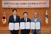한국현대미술신문 신정은 기자 | 충북 진천군 문백면 일대 도시가스 미공급 지역에 대한 도시가스 공급망 구축을 위해 진천군과 충청에너지서비스㈜, ㈜삼안이 손을 잡았다. 군은 16일 문백면 행정복지센터에서 ‘문백면 도시가스 공급, 분산 에너지 보급 확대 업무 협약식’을 개최했다. 이 자리에서 연료전지발전소 건설과 연계해 문백면 도시가스 미공급 지역 배관망을 확대하고 공급사업의 성공적인 추진을 위한 상호 협력을 다짐했다. 협약에 따라 배관 투자효율이 낮아 도시가스가 보급되지 못한 문백면의 군 유휴부지에 연료전지발전소를 유치, 도시가스를 조기에 공급할 예정이다. 이은천 군 경제과장은 “해당 협약을 통해 오랜 기간 도시가스 공급에서 소외됐던 문백면 주민들의 숙원을 해결될 수 있는 발판이 마련됐다”며 “군은 해당 사업이 원활하게 진행될 수 있도록 행정적인 지원을 아끼지 않겠다”고 말했다.