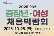 한국현대미술신문 박재남 기자 | 인천광역시는 중장년과 여성의 새로운 일자리 도전과 사회 참여 확대를 지원하기 위해 오는 10월 28일 인천시청 중앙홀에서 ‘2025 인천 중장년·여성 채용박람회’를 개최한다고 밝혔다. 이번 박람회는 올해 다섯 차례 진행된 ‘2025 인천 상설 채용박람회’의 마지막 일정으로, 인천시와 성평등가족부, 중부지방고용노동청 등 10개 기관이 공동으로 주최한다. 이번 행사에는 33개 기업이 참여해 현장 면접을 진행하고, 구직자들에게 실질적인 취업기회를 제공할 예정이다. 또한 채용관 외에도 ▲이력서 사진 촬영 ▲퍼스널컬러 진단 ▲인공지능(AI) 캐리커처 제작 등 구직자의 이미지 개선과 취업 경쟁력 향상을 위한 다양한 체험프로그램이 함께 운영된다. 연계행사로는 대회의실에서 ‘여성의 취·창업 역량 강화’를 위한 특별강연이 오전·오후로 두 차례 나뉘어 진행된다. 오전 1차 특강에서는 개그맨 출신 사업가 고명환이 강사로 나서 중장년층의 창업 전환을 주제로 실질적인 경험과 노하우를 전달하고, 오후 2차 특강에서는 과학 유튜버‘궤도’가 디지털 리터러시 향상과 인공지능(AI)을