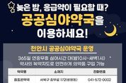 한국현대미술신문 신정은 기자 | 천안시는 공공심야약국을 5개소로 확대 운영한다고 12일 밝혔다. 시는 심야 시간대 의약품 구입 불편을 해소하기 위해 오후 10시부터 오전 1시까지 공공심야약국을 지정·운영하고 있다. 시는 올해 국비를 추가 확보함에 따라 공공심야약국 1개소를 추가 지정했다. 공공심야약국은 △참조은약국(쌍용동) △창가약국(성황동) △조은약국(봉명동) △천안제일약국(문화동) △밝은약국(신부동)이다. 공공심야약국은 설 연휴에도 휴무없이 운영하며, 약사의 복약지도에 따라 안전하게 의약품을 구입할 수 있다. 이현기 서북구보건소장은 “공공심야약국 확대 운영을 통해 시민들의 심야시간대 의약품 접근성이 한층 강화될 것으로 기대한다”며 “앞으로도 공공심야약국을 지속적으로 확대해 나갈 것”이라고 말했다.