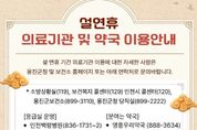 한국현대미술신문 박재남 기자 | 옹진군은 설 연휴 기간인 2월 14일부터 2월 18일까지 5일간, 의료공백을 최소화하고 응급환자 발생에 신속히 대응하기 위해 '설 연휴 응급진료체계'를 운영한다고 밝혔다. 군은 연휴 기간 중 보건소 내 ‘응급진료상황실’을 설치·운영하고, 지역응급의료기관을 중심으로 24시간 비상진료체계를 유지한다. 특히 연육되지 않은 도서지역 특성을 고려하여 보건지소·보건진료소와 유관기관 간 긴밀한 협력체계를 유지할 방침이다. 보건소는 연휴 기간 응급환자 발생 상황을 총괄 관리하며, 관내 보건지소 8개소와 보건진료소 11개소는 응급환자 진료 및 이송을 지원한다. 휴진이 발생할 경우 관할 보건지소 및 유관기관과 연계한 응급환자 이송체계를 가동해 업무 공백을 최소화할 계획이다. 또한, 백령병원(인천광역시의료원 백령병원)은 지역응급의료기관으로서 24시간 비상진료체계를 유지하며, 문 여는 병·의원 및 약국 7개소도 연휴 기간 주민 진료 편의를 지원한다. 군은 재난 및 다수사상자 발생 상황에도 대비해 119 등 관계기관과 협력체계를 유지하고, 신속 대응이 가능하도록
