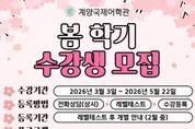 한국현대미술신문 박재남 기자 | 인천 계양국제어학관이 2026년 봄 학기 프로그램 수강생을 모집한다고 밝혔다. 수강 기간은 3월 3일부터 5월 22일까지이며, 전화 상담 후 레벨테스트를 거쳐 수강 등록이 진행된다. 등록 일정은 레벨테스트 이후 개별 안내될 예정이다. 정규 프로그램 레벨테스트는 오는 2월 10일 오후 3시에 계양국제어학관 누리집을 통해 온라인으로 진행되며, 선착순으로 접수 마감된다. 모집은 계양구민을 우선으로 한다. 정규 프로그램은 초·중등을 대상으로 운영되며, 월·수·금반은 4회, 화·목반은 23회 과정으로 진행된다. 교육과정은 단계별 영어 수업(Basic 1~MA)으로 운영되며, 최상위 과정인 알파고(Alphago)반이 포함된다. 원어민 및 내국인 강사의 교차 수업 방식으로 진행되며, 무상 통학버스를 운영한다. 토요 프로그램은 초·중등을 대상으로 운영되며, 1시간 수업은 11회 과정, 2시간 수업은 11회 과정이다. 프로그램은 스토리텔링, 리딩어드벤처스, 일본어, 컬러풀 잉글리시, 영어과학 과정으로 구성된다.