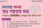 한국현대미술신문 배윤섭 기자 | 성남산업진흥원은 '2026년 스케일업 지원 정책'을 주제로 오는 12월 11일 11시 30분부터 2025년 제4회 '성남기업성장포럼'을 개최한다. ‘성남기업성장포럼’은 2024년 9월 첫 포럼 개최 이후, 매회마다 참석자가 증가하여, 지난 10월 제3회 포럼에는 170여명의 기업 임직원과 10여개 기업지원기관이 참여하는 등 성남시 기업 성장을 위한 대표 네트워크로 성장하고 있다. 성남시 소재 기업 임직원은 누구나 포럼 참석이 가능하며, 성남산업진흥원 홈페이지를 통해 참석 신청을 할 수 있다. 이번 포럼에서는 '기업지원 미니설명회'에서 시니어 오너 기업의 엑시트(Exit) 전략에 대한 법무법인 지평의 발표에 이어 창업진흥원과 중소기업기술정보진흥원이 2026년 스케일업 지원방향과 주요 사업을 소개한다. 김윤정 창업진흥원 혁신사업화본부 본부장은 창업 초기단계와 성장단계 기업에 대한 내년도 지원 내용을 설명하고, 차인호 중소기업기술정보진흥원 사업총괄관리실 책임연구원은 중소기업 기술혁신(R&D)을 위한 주요 사업을 안내한다. 또한 성남시 소재 2개사가 자사의 기술
