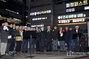 한국현대미술신문 배윤섭 기자 | 고양특례시 덕양구는 지난 2일, 따뜻한 연말연시 분위기를 조성하기 위해 화정문화광장에 대형 크리스마스 트리를 설치하고, 덕양기독교연합회 주관의 점등식 행사를 개최했다고 밝혔다. 이날 행사에는 덕양기독교연합회를 비롯해 한찬희 덕양구청장과 시민 50여 명이 참석했다. 크리스마스 트리에 불을 밝히며 성탄 메시지를 전달했고 축사, 중창단의 성탄 노래 등이 이어졌다. 화정역과 화정 문화의거리 사이에 위치한 화정문화광장에는 높이 7.9m, 폭 4m의 대형 트리와 포토존, 눈사람 조명 등 다양한 조형물이 설치돼 시민들에게 따뜻한 빛과 함께 희망의 메시지를 전한다. 크리스마스 트리는 매일 17시부터 익일 2시까지 점등해 화정역 광장을 중심으로 희망찬 연말연시 분위기를 연출할 예정이다. 한찬희 덕양구청장은 “추위로 몸과 마음이 움츠러드는 요즘, 점등식 행사를 통해 환하게 밝힌 불빛이 시민들에게 따듯한 희망과 위로를 주기를 바란다.”며 “크리스마스 트리를 통해 즐거운 추억을 많이 만드시고 모두가 따뜻한 연말연시를 보낼 수 있기를 소망한다”고 말했다.