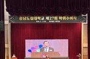한국현대미술신문 신정은 기자 | 충남도립대학교 졸업생 344명이 배움의 시간을 마치고 지역과 사회를 향한 새로운 출발선에 섰다. 충남도립대학교는 11일 대학 해오름관 다목적실에서 ‘제27회 학위수여식’을 개최하고 전문학사와 학사 학위를 수여했다. 이날 행사에는 김태흠 충남도지사를 비롯해 정광섭 충남도의회 부의장과 도의원, 청양군수, 군의회 의장 등 주요 기관장이 참석했으며, 졸업생과 학부모, 교직원 등 450여 명이 함께해 졸업생들의 앞날을 축하했다. 무엇보다 올해 학위수여식은 도정을 책임지고 있는 김태흠 지사가 직접 참석해 졸업생 한 사람 한 사람의 출발을 응원했다는 점에서 의미를 더했다. 김태흠 지사는 격려사와 함께 전체 수석에게 표창을 수여하며 지역 인재에 대한 기대를 전했다. 김태흠 지사는 “충남도는 청년이 지역을 떠나지 않아도 되는 환경을 만들기 위해 산업과 일자리를 키우고 주거와 정주 여건을 지속적으로 개선하고 있다”며 “청년들이 이곳에 뿌리내리고 살아가며 미래를 설계할 수 있도록 기반을 더욱 단단히 다져 나가겠다”고 밝혔다. 그러면서 졸업생들에게 ‘수처작주(隨