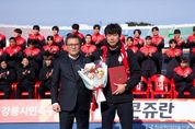 한국현대미술신문 원진 기자 | FC강릉(재단법인 강릉시민축구단)은 2026시즌을 앞두고 직무대행 체제였던 감독직위에 임다한 감독을 임명하여, 새 시즌을 향한 팀 운영 체제를 완성했다. 구단은 2026년 1월 30일, 임다한 감독 임명식을 개최했다. 이날 FC강릉 이사장인 김홍규 강릉시장이 직접 임명장을 수여하며, 감독 직무대행 체제로 운영되던 팀이 정식 감독 체제로 전환했음을 대외적으로 분명히 했다. 임다한 감독의 선임을 계기로 FC강릉은 2026시즌을 향한 지휘 체계를 명확히 정립하고, 전지훈련을 포함한 시즌 준비에 속도감 있게 돌입할 계획이다. 임명식 직후에는 2026시즌을 대비해 구성이 완료된 선수단(40명: 코치8, 선수단32)의 첫 공식 행사로 단체사진 촬영이 이어졌다. 이번 행사는 완성된 선수단의 현재 모습을 대중에게 처음 선보이는 자리로, 2026시즌 FC강릉의 출발을 상징하는 장면이 될 전망이다. 또한 김홍규 이사장은 전지훈련을 앞둔 선수단에게 격려와 응원의 메시지를 전하며 선전을 당부했고, 선수단 역시 새 시즌을 향한 각오와 결의를 다지는 시간을 가졌다. FC강릉 최윤순