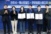 한국현대미술신문 기자 | 대한민국 대표 영화도시인 전주시가 글로벌 영화영상산업 수도로 도약하기 위해 세계적인 영상 제작 인프라를 보유한 국내·외 기업들과 손을 맞잡았다. 시와 웨스트월드(대표 손승현), 쿠뮤필름스튜디오는 19일 시청 3층 소회의실에서 우범기 전주시장과 손승현 웨스트월드 대표, 양수연 쿠뮤필름스튜디오 본부장 등이 참석한 가운데 ‘전주시 영화영상산업 발전 및 투자를 위한 양해각서(MOU)’를 체결했다. 이번 협약은 시가 추진 중인 ‘글로벌 영화영상산업 수도’ 조성의 핵심 거점을 마련하고, 국내외 유수 기업의 기술력과 네트워크를 전주에 이식하기 위해 추진됐다. 이 자리에서 3개 기관은 △쿠뮤필름스튜디오 전주시 투자 확정 △웨스트월드 전주 지사 설립 △영화·영상 등 콘텐츠 기업에 대한 투자 활성화에 적극 협력하기로 약속했다. 협약에 참여한 웨스트월드는 ‘오징어 게임’, ‘좀비딸’, ‘다 이루어질 지니’와 같은 글로벌 히트작의 시각효과(VFX) 제작에 참여한 국내 최고의 기술력을 보유한 기업이다. 이 기업은 특히 넷플릭스와 기술 파트너십을 체결할 만큼 독보적인 비주얼 퀄리티를 자랑한다. &