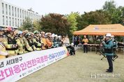 한국현대미술신문 배건 기자 | 서대문구는 최근 이화여자대학교 산학협력관 일대에서 진행한 ‘2025 재난대응 안전한국훈련’을 성공리에 마무리했다고 3일 밝혔다. 이번 훈련은 ▲지진에 따른 건축물 붕괴와 화재 ▲전기·가스시설 파손 ▲도로 싱크홀 및 인근 산불 확산 등 복합 재난 상황을 가정해 이루어졌다. 단일 재난이 다른 재난으로 연쇄 확산하는 ‘복합 재난’의 특성을 반영해 현장 지휘·통제·복구 기능이 동시에 가동되는 통합형 훈련으로 추진했다. 서대문구청, 서대문소방서, 서대문경찰서, 이화여자대학교 등에서 300여 명이 참여한 가운데 각 기관은 재난 발생 시 상황판단 회의를 통한 신속한 의사결정과 유관기관 협조 체계를 점검했다. 이를 위해 통합지원본부 토론훈련과 실전형 현장훈련을 연계했다. 특히 이번 훈련에서는 소방 헬기와 로봇견(로봇개)을 활용한 입체적 화재 진압과 인명 수색 장면이 시연돼 실전 같은 긴장감을 더했다. 또한 서대문구청 ▲도로과의 ‘GPR(지반탐사 레이더) 차량을 통한 이화여대 일대 지반 공동 탐사’ ▲푸른도시과의 ‘안산(鞍山) 자락 잔불 진화’ ▲재난안전과의 ‘드론을 이용