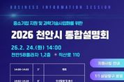 한국현대미술신문 신정은 기자 | 천안시는 오는 24일 천안과학산업진흥원과 함께 천안SB플라자에서 ‘중소기업 지원 및 과학기술사업화를 위한 2026 천안시 통합설명회’를 개최한다고 11일 밝혔다. 이번 설명회는 시와 관련된 기관·단체에서 추진하는 중소기업 지원사업에 대한 종합정보를 제공하고, 과학기술사업화 유관기관의 지원사업을 안내하기 위해 마련됐다. 설명회에는 중소기업 지원, 연구개발(R&D), 금융·보증, 기술사업화, 투자 분야의 공공기관 , 연구기관 등 22개 기관이 참여하며, 주요 정책 발표와 1:1 상담 부스 등을 통해 맞춤형 정보를 제공할 예정이다. 시 관계자는 “이번 설명회를 통해 중소기업들이 다양한 지원제도를 효율적으로 제공받을 수 있길 바란다”고 말했다.
